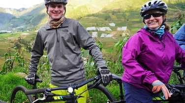 This morning we will collect our mountain bikes and set off from the Llanganates National Park to the winding Pastaza River Canyon, glorying in the misty canopy that surrounds us. The route travels through traditional Andean farms and passes a steep canyon with waterfalls cascading down it's sides. As we descend through an area of luscious rainforest, we will catch glimpses of a breath-taking view of Baños, stretching out to the ashen slopes of Tungurahua volcano, which has been active since 1999. In the afternoon we will have some time to explore the town and visit The Swing of the End of the World, before returning to our guesthouse for the evening.
